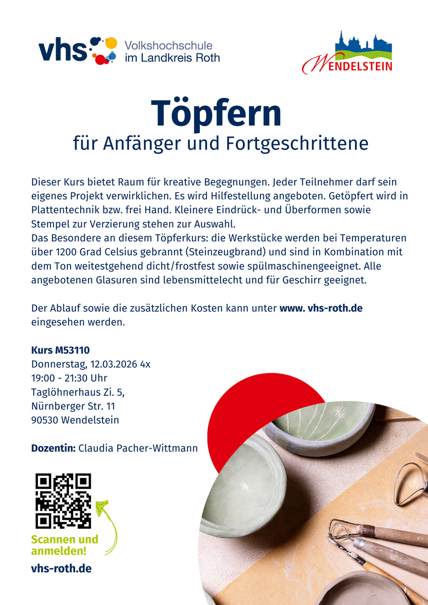 Die Gemeinde Wendelstein ist Mitglied im Zweckverband der Volkshochschulen des Landkreises Roth. Als Außenstelle bieten wir Ihnen zweimal im Jahr ein breit gefächertes örtliches Frühjahr-/Sommerprogramm und Herbst-/Winterprogramm an.