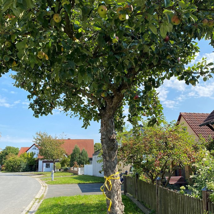 Die Pflanzung von Obstbäumen wird mit einem Betrag von 50 % der entstandenen Kosten, maximal 50,00 €, gefördert.